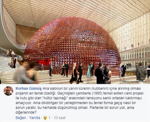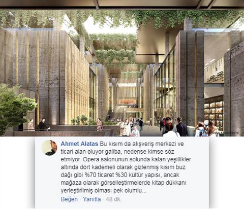 Beklenmeyen olumluluklarla dolu bir proje lansmanı; Tabanlıoğlu'na emanet edilmiş olması, eski projenin en önemli unsuru olan cephenin muhafaza edilmiş olması, çirkin bir meydana dönüşmüş olsa da meydanla bütünleşmesi, kamuya açık ek fonksiyonlarla daha yaşanır bir mekana dönüşmesi çok olumlu. İnşaat alanın zemin üstünde çok büyümesi olumsuz ama çatıların gerçekten kamuya açık park haline dönüştürülebilmesi durumunda bu durum da hazmedilebilir! YANITLA