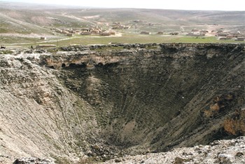 Karapınar Belediye Başkanı Mehmet Mugayıtoğlu, “İlçenin çevresinde son iki yılda 10 obruk oluştu. Obruklar giderek ilçeye yaklaşıyor” dedi. Konya’nın Karapınar ilçesinde yer yarılıp içine düşme korkusu had safhada. İlçede son olarak bir mısır tarlasının yakınında oluşan obruk, 80 metre derinliğindeydi (Boğaziçi Köprüsü’nün yüksekliği 65 metre). 70 metre çapındaki bu obruk, ilçeye 17 kilometre, Konya-Adana karayoluna ise sadece 100-150 metre uzaklıkta. MTA, bölgede obruk riski haritası çıkarmak üzere kolları sıvadı. MTA uzmanları, risk hesaplandıktan sonra obrukların bölgeye turistik cazibe bile kazandırabileceği görüşünde. Ama Belediye Başkanı Mugayıtoğlu’nun endişeleri geçmiş değil: “Risk haritası araştırmasının birkaç yıl sürmesi bekleniyor.” |