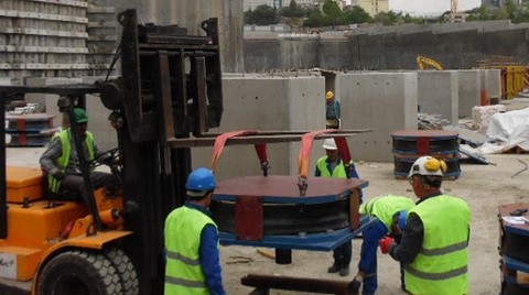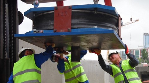 Akıllı ve yeşil bina konseptiyle yeniden inşa edilmeye başlanan Okmeydanı Eğitim ve Araştırma Hastanesi'nde deprem riskine karşı da sismik izolatörlerin montajına başlandı.