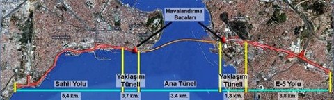 yollarla geçilecek, tüp tünelin iç çapı 11,4 m, dış çapıysa 12,4 m olacak.