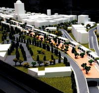 yolları, meydanlar, dükkanlar, kafeler ve oyun alanları ile donatıldı. Bölgedeki
