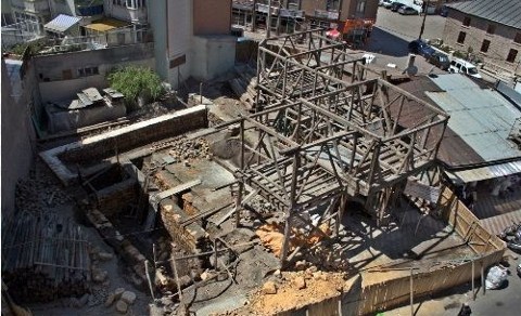 restore yapmadığı gerekçesiyle onarımı durdurulan tarihi handa, yapılan yeni