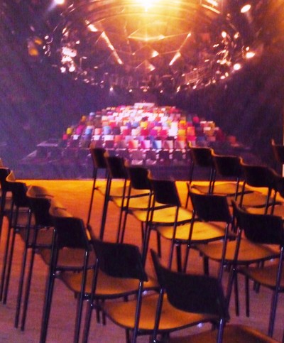 kaleydoskop etkisi. Salonda her biri farklı izleyiciler ve sandalyelerin