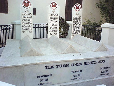 ilk Türk hava şehitleri olan Fethi Bey, Sadık Bey ve Nuri Bey’in mezarları da