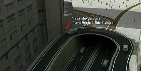 kentin en önemli kamusal mekanının dalış tünelleri ile bir otoban kavşağına