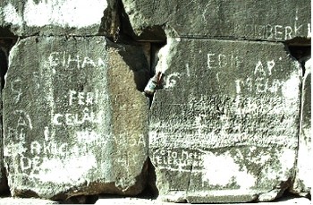 bulunan tarihi eserlerin, üzerlerine sprey, tornavida ve demirlerle yazılan aşk