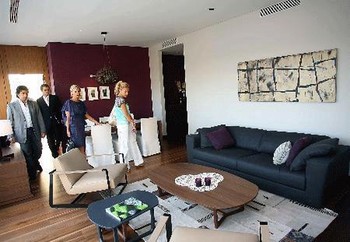 daireleri gezdi. Daha sonra 600 metrekarelik ‘Lounge’da bir araya gelen ev