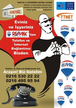 “Eviniz ve işyeriniz RE/MAX’ten, telefon ve internet bağlantınız Türk Telekom’dan” sloganıyla gerçekleştirilen kampanya çerçevesinde, İstanbul’daki RE/MAX ofisleri kanalıyla gayrimenkul satın alan ya da kiralama yapanlar, sabit hat ve ADSL bağlatmak için, bir telefonla Türk Telekom’un ücretsiz kapıya servisinden yararlanma ayrıcalığı elde