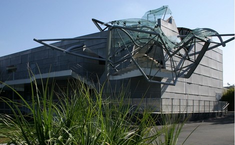 1940'larda inşa edilmiş, bitişik, her ikisi de yıpranmış, birisi testere dişi çatılı diğeri yay biçimle bir kirişle desteklenmiş çatısı olan iki depo binası başlangıçta Los Angeles Filarmoni Orkestrası'nın deneysel konserlerine mekan sağlamak amaçlı yeniden tasarlanmış ve sonradan yeniden modellenerek bir ofise ve bir internet ve grafik tasarım şirketinin üretim-üretim sonrası tesislerine dönüştürülmüştür. Hacimlerin dış biçimleri özünde aynı kalmış, ancak dışarıya giriş rampası, yürüyüş yolları ve merdivenler eklenmiştir. İçeride iki lobi, dört geniş girinti, iki konferans merkezi, 20 özel ofis ve açık çalışma alanları yer almaktadır. Binanın dış cephesi iki tür çimento panel ile kaplanmıştır. Bunlar, yaykirişi destekli üretim tarafında pürüzsüz, testere dişi çatılı üretim sonrası tarafta ise dalgalıdır. Mekanda tanımlanan işlevler nedeniyle binaya "şemsiye" ismi verilmiştir. Giriş kısmındaki rampalar hariç, hafifçe sırlanarak içe dönük bir karakter kazandırılmıştır. Projenin ana kavramsal parçası, yaykirişi destekli binanın köşesinde, çatı katında yer alan, giriş rampasının üzerine doğru çıkıntı yapan açık havada oturma, dinlenme, müzik yapma amaçlı amfitiyatro alanıdır. Şemsiye, deneysel bir yapıdır; kavramsal bir çanak, eğimi, yıkılmış komşu bir projeden kurtulmuş ve buraya eklemlenmiş, ters çevrilmiş iki ahşap kafes kirişin üst çubuğu ile belirlenmiş bir arenadır.