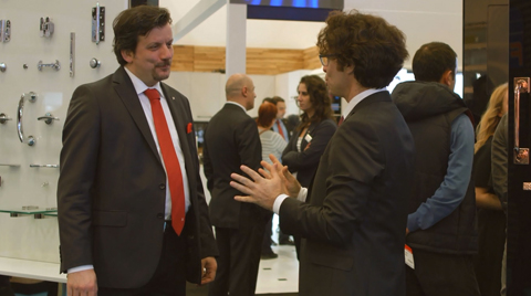 Hafele İcra Kurulu Başkanı Hilmi Uytun, 38. Yapı Fuarı - Turkeybuild İstanbul'da Yapı-Endüstri Merkezi (YEM) Genel Müdürü Tolga Türkanık'a Hafele'nin yeni ürünlerini anlattı.