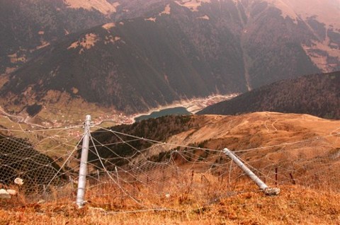 önlem amacıyla yapılan rüzgar perdesi ve çığ önleme kafeslerini