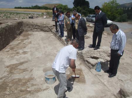 (Parlasan) köyündeki kazı alanına geldi. Bölgede yaptıkları çalışmalar