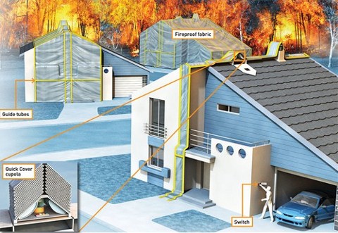 basıyor. Ev birkaç saniye içinde yanmaz bir örtü ile kaplanıyor. Otomobillerdeki