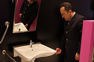Bunlardan biri hareketli bedensel engelli lavabosu. Pille çalışıyor. Dünyada