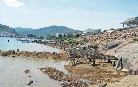 güneşlenme terası ve kıyı düzenlemesi yapıldığı, denizin doldurulduğu ve çevre