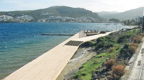 Gündoğan’da yapılan Bodrum Blue Otel’in kıyı şeridini doldurması ve iskele