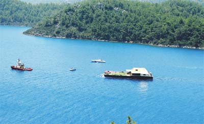 demirledi. Halatlarla kıyıya bağlı yüzer villa, duba yat olarak ruhsat aldığı