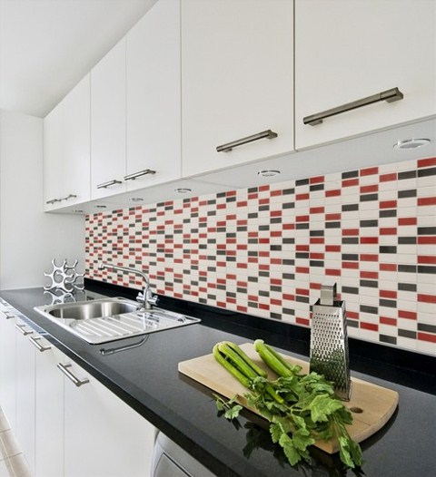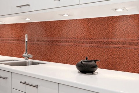 dolaplarla tezgâh arasında kalan bölümler için ürettiği değişik renk ve