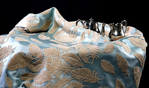 saten üzerine şönil yapraklar ile 3 boyutlu bir