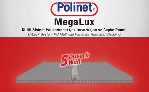 Megalux Sistemin 5 katmanlı yapısının içindeki hava kanalları daha yüksek ısı yalıtımını sağlıyor. Megalux sistemin sağladığı yüksek ışık geçirgenliği, geniş renk alternatiflerine göre değişkenlik göstererek, çok estetik ve fonksiyonel çözümler sunuyor. Her iki yüzünün U.V korumalı olarak üretilebilmesi malzemenin güneş ışınlarına karşı mukavemetini maksimuma çıkarıyor. Megalux sistem içinde yer alan özel tasarımlı aluminyum profiller ve diğer aksesuarlar uygulamayı kolay, hızlı ve sorunsuz hale getiriyor. Megalux pc paneller kolayca bükülebilmesi, esnek olmasına karşın darbelere dayanıklılığı ve diğer özellikleriyle birlikte mimari doğal aydınlatma malzemesidir.