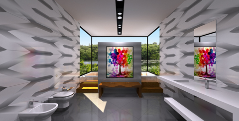 EKİN ÇOBAN TURHAN / TESSELLATE: Seramiğin tekrar eden yapısıyla kuvvetlenen basit/etkili yüzeylere sahip… Seramiğin üç boyutlu geometrik yüzeyinin keskin hatları mekanın üç boyutlu algısına farklı bir anlam katıyor. Doğal ve müdahale edilmemiş malzeme ve sistemler (doğal taş, ahşap, beton, vb.) ile kullanılması öngörülen tasarımda modül ve modül gruplarının renk ile değil, gölge ile hatları çizildi.