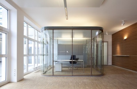 System T, bu türün ilk bölme duvar sistemi olarak, ofislere doğal, sıcak bir