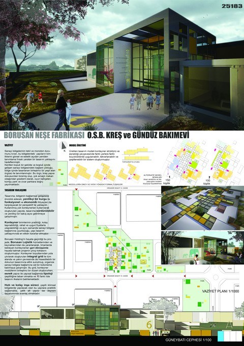 Borusan, Aile ve Sosyal Politikalar Bakanlığı ile Bilim, Sanayi ve Teknoloji Bakanlığı işbirliğiyle başlatılan “Annemin İşi Benim Geleceğim” programı kapsamında düzenlenen Organize Sanayi Bölgeleri’nde Kreş ve Gündüz Bakımevi Ulusal Mimari Proje Yarışması 'nın sonuçları açıklandı. Proje kapsamında 10 ildeki 10 organize sanayi bölgesinde (OSB) 'Borusan Neşe Fabrikası' adlı kreş ve gündüz bakımevleri kuralacak.