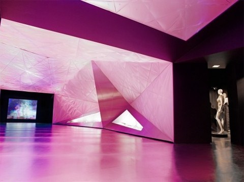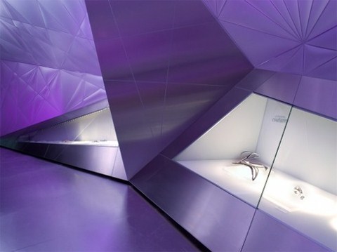 markasını tanıtmak üzere hazırlanan tasarımın katlanmış yüzeyli strüktürü, fuar