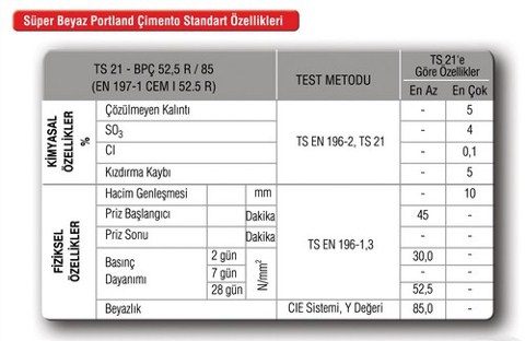 bağlayıcı. BPÇ 52,5 R / 85 olarak tanımlanan bu ürün ayrıca, EN 197-1 standardı