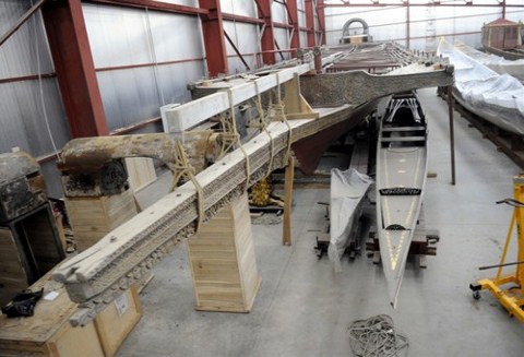 yıllık bir kadırganın geriye kalan son kıç parçasını sergiye hazır hale