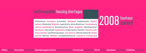 Bauhaus Dessau Foundation tarafından beşinci kez verilecek, modernizmde yenilikleri hedef alan Bauhaus Ödülü için Bauhaus akımını çağdaş bir söylemle ele alan, günümüzde asgari geçim düzeyine sahip kişilerin konut ihtiyacına yönelik çözüm önerileri bekleniyor.