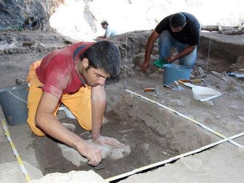 Yrd.Doç.Dr. Erek, Direkli Mağarası'nda devam eden kazılarda buldukları figürün