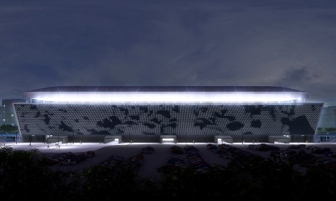 Üstün LED ekrana sahip stadyum cephesi