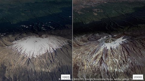 Kilimanjaro Dağı’nın doruklarındaki buzulların 12 bin yıllık olduğu tahmin ediliyor. Son 100 yıl içinde bu buzulların neredeyse yüzde 80’i eridi. Mevcut koşulların sürmesi durumunda, 2022-23 yılları arasında bu buzulların tarih olması bekleniyor. Kuraklık ve yetersiz yağış nedeniyle buzullar hızla eriyor.