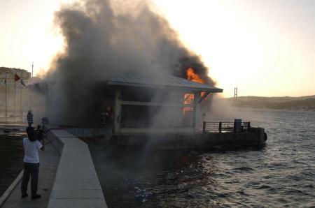 alevler kısa sürede ahşap iskeleyi tamamen sardı. Çevredekilerin ihbarı üzerine