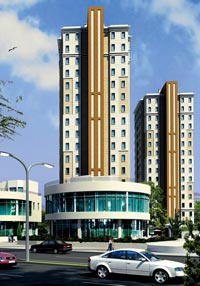 üzerinde 18 ve 14 katlı iki kule yükseliyor. Konut olarak planlanan projenin