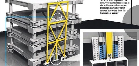 ABD’nin Stanford Üniversitesi’nden Gregory Deirlein ve Northeastern Üniversitesi’nden Jerome Hajjar binaların, dış cephelerine monte edilen değiştirilebilir esnek çelik halatlarla 7 şiddetinden büyük depremlere dayanmalarını sağlayan bir sistem geliştirdi.