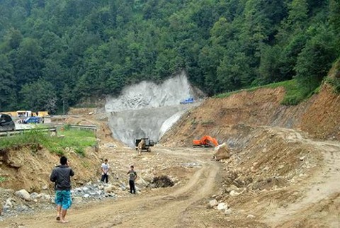 yapabilmek amacıyla dere yatağındaki su, dağ içerisine açılan tünele alındı,