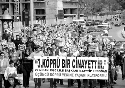 köprü bir grup tarafından protesto edildi.