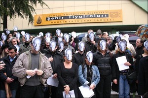 ongre Vadisi kapsamında Harbiye Muhsin Ertuğrul Sahnesi’nin yıkılmasına karşı çıkan tiyatrocuların eylemi sürüyor. Tiyatrocular, “Bağımsız tiyatro istiyoruz, bir binanın içinde deterjan reyonu gibi tiyatro istemiyoruz” diyor. |