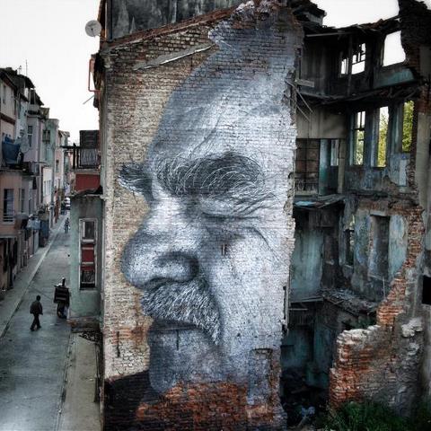 JR Fatih’te bir binaya 'Wrinkles of the City' projesi kapsamında bir portre çizmişti.