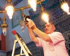 Zonguldak'ın Ereğli ilçesinde camilere tasarruflu lambaların takılması ile