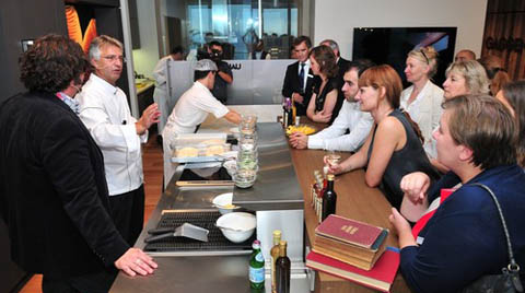 Gaggenau, İstanbul’daki amiral gemisi 'showroomu'nun açılışını özel bir etkinlik kapsamında, Sapphire binasının 32. katında, BSH İcra Kurulu Üyesi Jean Dufor, BSH Türkiye Satıştan Sorumlu İcra Kurulu Üyesi Ronald Grünberg ve Gaggenau Dünya Başkanı Sven Schnee’nin ev sahipliğinde ve uluslararası medya temsilcilerinin katılımıyla gerçekleştirdi. “Doğu ile Batı’nın Buluşması” temasıyla yapılan özel etkinlikte, İngiliz restoran eleştirmeni ve yazar Jay Rayner ile araştırmacı ve Gastronomi Uzmanı Vedat Başaran, Osmanlı saray mutfağının batının mutfak kültürü üzerindeki etkilerini değerlendirdi.