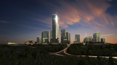 finans merkezi binalarının uzaktan görünümü arasındaki simetri, İstanbul’a 21.
