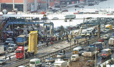 Kamyon geçtikten sonra üst geçitin orta kısmı çöktü. Üst