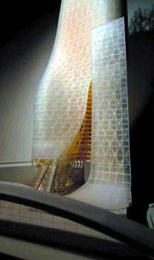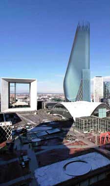 Nikolai Ouroussof bu tasarımı şöyle değerlendiriyor: "Yarışmaya katılan diğer ünlü isimlerin projeleriyle bir karşılaştırma yaparsak Mayne’in, hipnotize edici güçte bir bina yaratmak istediğini söyleyebiliriz. Paris merkezinden görülen binanın tiril tiril dış cephesi sofistike bir görünüm sergiliyor. Ama daha yakından bakıldığında, çapraz çelik kirişlerin tuttuğu perforeli metal yüzeyin de algılanışıyla, binanın daha adaleli bir görüntüsü olduğunu farkediyorsunuz. Perdenin aurası hoş bir titreşim yaratıyor ve tasarımın yüzeysel olmadığını gösteriyor. Bir tripod etkisi yaratan devasa çelik bacaklar üzerine kurulu kule, metro bağlantısıyla, yaya ve tren trafiğinin alttan akışına izin veriyor. Delikli metal eteğinin altındaki dev yürüyen merdivenler, restoran ve cafelerle dolu lobi katına ulaşmak için 30 metreden fazla bir yüksekliğe çıkıyor. Binanın enerjisi La Defense’ın kent içindeki şöhretinin pabucunu dama atacak gibi gözüküyor.