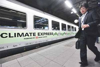 Zirveye katılacak 450 BM yetkilisini taşıyan İklim Ekspresi ise Belçika’dan yola çıktı. Demiryolu yetkilileri, İklim Ekspresi’nin yolculuğu için gereken miktarda elektriği yenilenebilir enerji kaynaklarından aldıklarını açıkladı. Başka bir deyişle 450 BM yetkilisi, Kopenhag’a giderken dünyada neredeyse hiç karbon ayak izi bırakmadı!