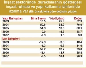2007 yılında binalara 105 bin inşaat ruhsatı verildi. 2006 yılında 114 bin ruhsat verilmişti. Bina inşaatı ruhsatı sayısında bir yıl önceye göre yüzde 7.3 azalma var.