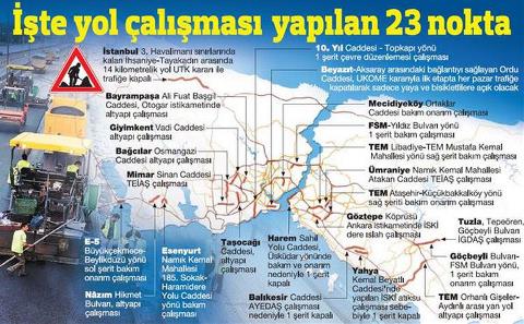 İstanbul'un En Kritik 23 Bölgesinde Yol Çalışması Var