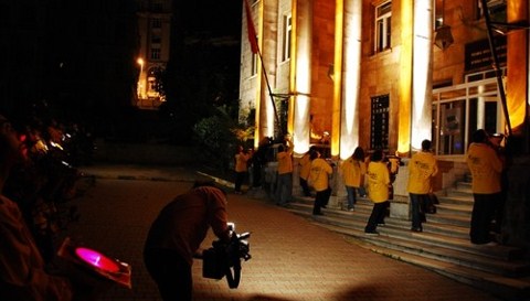 ses ile Beyoğlu Belediyesi binası aydınlatıldığında önce şaşırdı, sonra